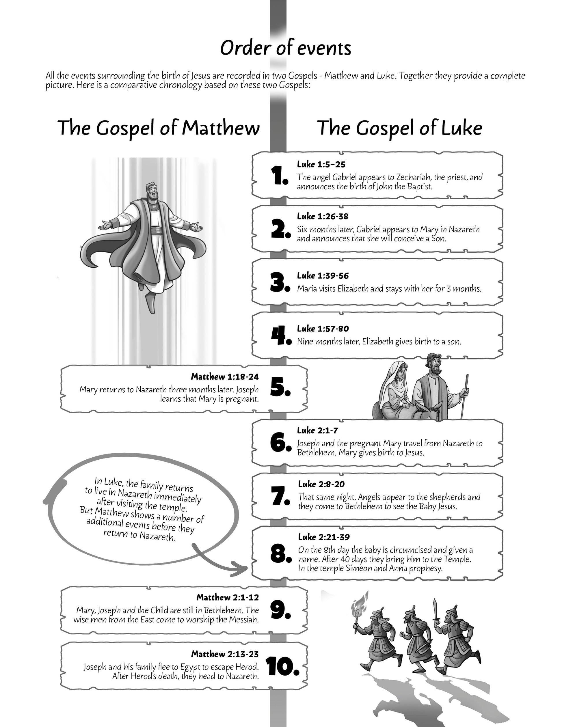 This coloring book is a companion to The Birth of Jesus comic book. It is identical to the comic book in content, yet left black-and-white for children to color. It contains 10 stories from the gospels of Matthew and Luke. Arranged in chronological order the stories masterfully unite both gospels creating one seamless narrative of how Jesus was born.