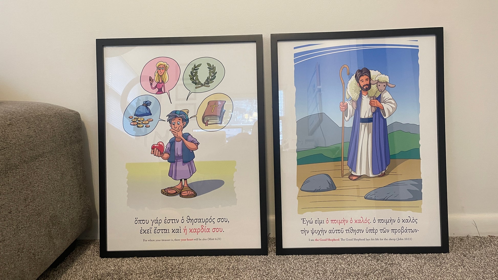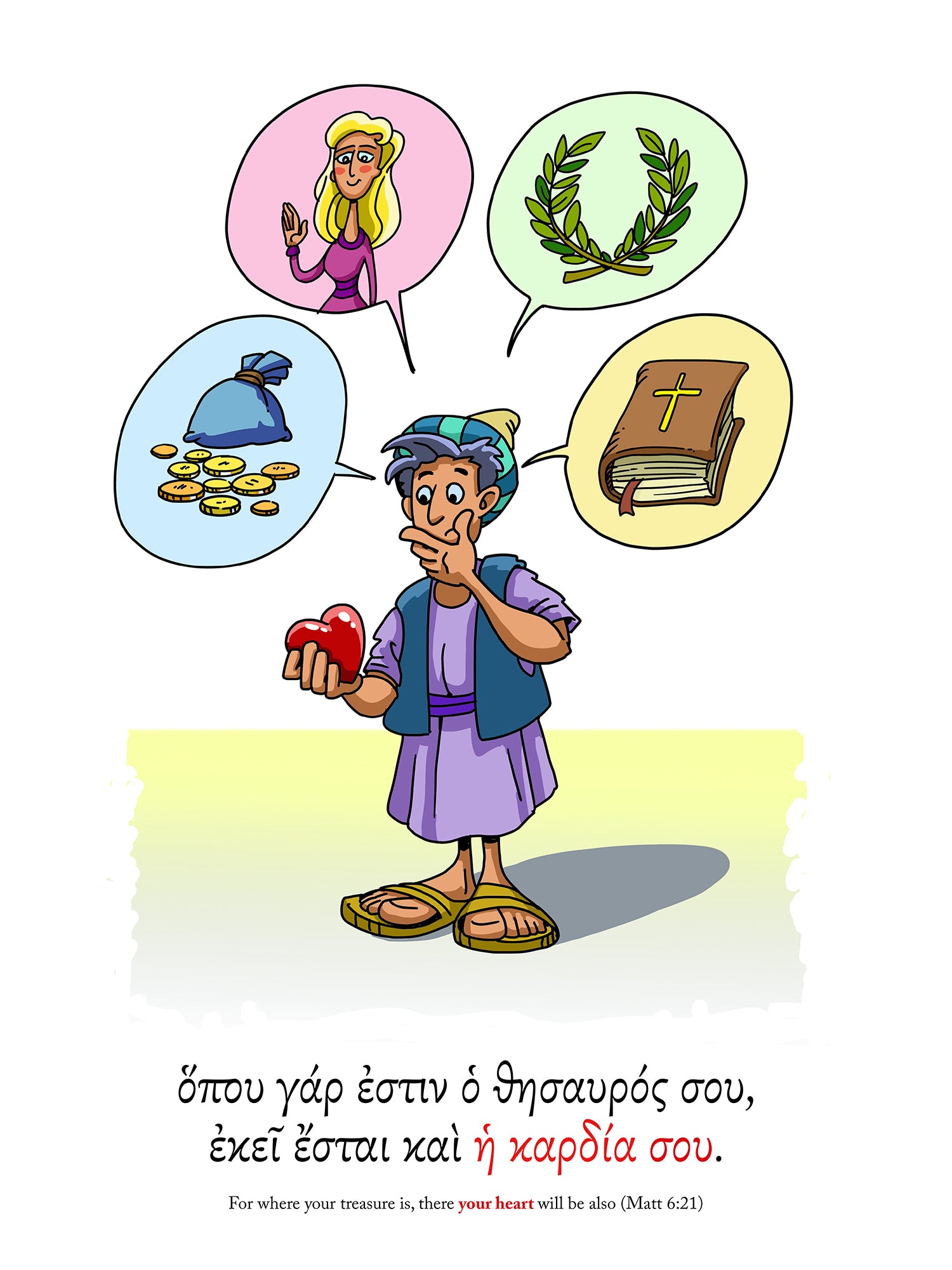The verses are written in both the original Greek and English.