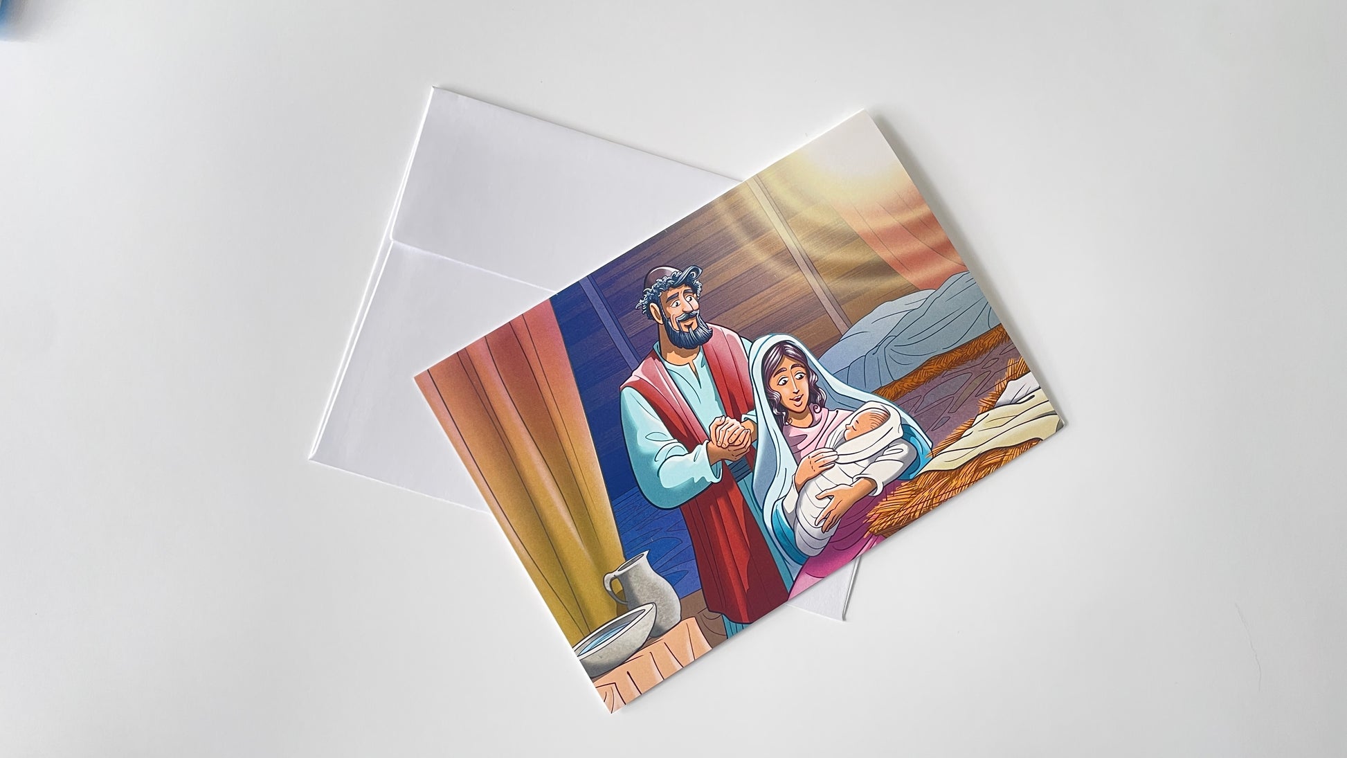 Christmas greeting cards set contains 10 different cards illustrating various scenes from the biblical story of Jesus birth. Each card has a Bible verse with a promise or encouragement appropriate for the season.